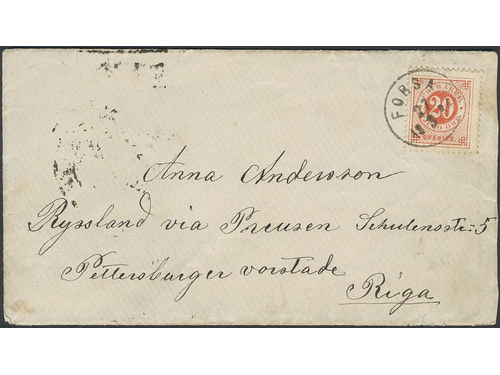 Sweden. Facit 33 on cover, 20 öre on beautiful cover sent from FORSA 27.3.1884 to Riga. Sweden. Facit 33 on cover, 20 öre on beautiful cover sent from FORSA 27.3.1884 to Riga. Visa mindre