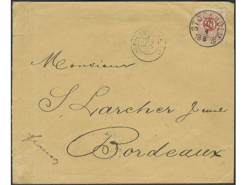 Sweden. Facit 33 on cover, 20 öre on beautiful cover sent from STOCKHOLM C 4.6.1879 to France. Sweden. Facit 33 on cover, 20 öre on beautiful cover sent from STOCKHOLM C 4.6.1879 to France. Visa mindre