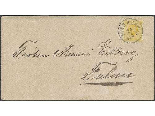 Sweden. Facit 34 on cover, 24 öre very beautiful double rate cover sent from FINSPONG 24.5.1881 to Falun. Slightly aged. Sweden. Facit 34 on cover, 24 öre very beautiful double rate cover sent from FINSPONG 24.5.1881 to Falun. Slightly aged. Visa mindre