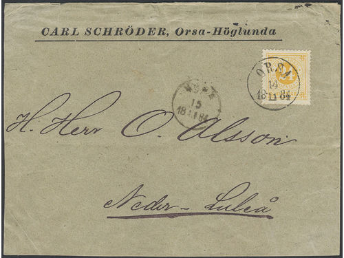 Sweden. Facit 34 on cover, 24 öre very beautiful double rate cover sent from ORSA 14.11.1884 to Nederluleå. Sweden. Facit 34 on cover, 24 öre very beautiful double rate cover sent from ORSA 14.11.1884 to Nederluleå. Visa mindre