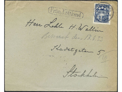 Sweden. Cancellations, FRÅN LETTLAND. Incoming cover sent from Latvia to STOCKHOLM 16.6.33. Postal: 2000:- Sweden. Cancellations, FRÅN LETTLAND. Incoming cover sent from Latvia to STOCKHOLM 16.6.33. Postal: 2000:- Visa mindre