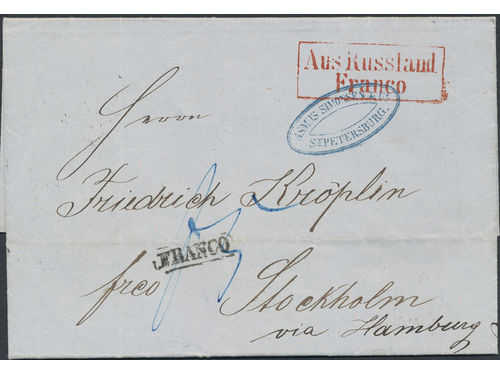 Sweden. Foreign-related cover. Russia. Prepaid letter dated 'St. Petersburg 6 Sept 1862' sent via HAMBURG K.S.P.A.(D.) 1.. Läs mer Sweden. Foreign-related cover. Russia. Prepaid letter dated 'St. Petersburg 6 Sept 1862' sent via HAMBURG K.S.P.A.(D.) 10.9.1862 to STOCKHOLM 1.TUR 14.9. Superb. Visa mindre