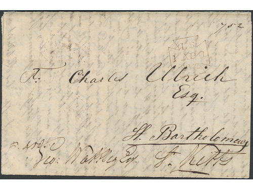 Sweden. Foreign-related cover. Saint Barthélemy. Cover privately conveyed to London, postmarked LS 1.AP.1842 and sent to.. Läs mer Sweden. Foreign-related cover. Saint Barthélemy. Cover privately conveyed to London, postmarked LS 1.AP.1842 and sent to St Kitts for further transportation. Fragile. Visa mindre