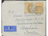 Gold Coast. Michel 132 cover , 1948 Silver Jubilee 1½ p red in pair together with two 6d postal stationary cut-outs cancelled PRESTEA 25 JAN 49 sent by airmail to Sweden.