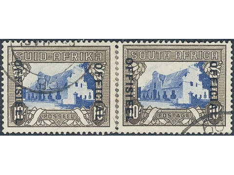 South Africa. Postage due Michel 64/65 used, 1950 Official FU 10/- blue/charcoal in reconstructed pair. A few short perfs. EUR 700