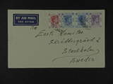 Hong Kong. Michel 144, 151, 154 on cover, 10, 30 in pair and 80 C on air mail cover to Sweden, canc. HONG KONG 8 OC 49, arrival canc. STOCKHOLM 16.10.49.