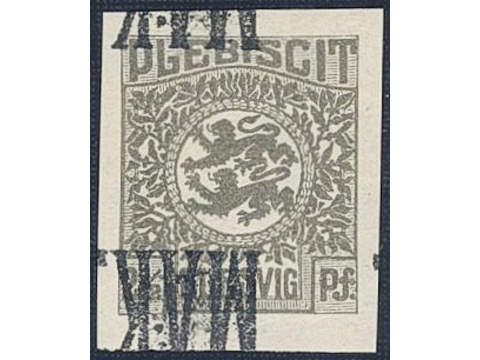 Denmark Schleswig. Facit 1 or Scott 1 (★) , 1920 Lion and Landscape 2½ pf grey imperforate with black MAK overprint. Mi 1P2.