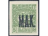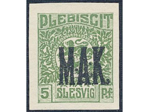 Denmark Schleswig. Facit 2 or Scott 2 (★) , 1920 Lion and Landscape 5 pf olive-green imperforate with black MAK overprint. Mi 2P2.