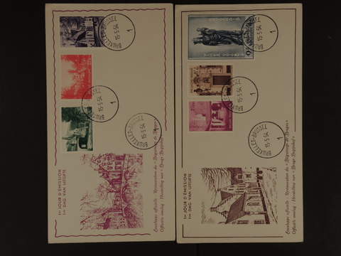 Belgium. FDC, Michel 995–1000, 1954 Brugge SET on two FDCs. Unusual. EUR 160