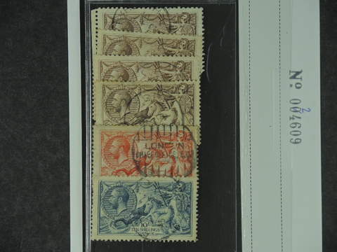 Britain. Michel 141–43 III used , 1918 Sea Horses by Wilkinson SET with four shades of 2s6d, SG 413a, 414-15, 415a, and 416-17. A few short perfs. EUR 200