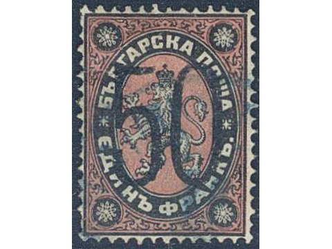Bulgaria. Michel 24 II used, 1885 New value overprint 50/1 F black/red. EUR 450