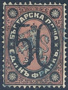 Bulgaria. Michel 24 II used, 1885 New value overprint 50/1 F black/red. EUR 450