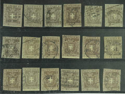 Italy Tuscany. Michel 19 a+c used , 1860 coat of arms 10 c. 18 copies. EUR <450