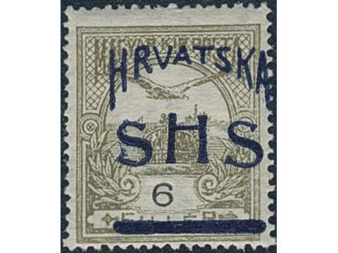Yugoslavia. Michel 55 ★★, 1918 SHS overprint on 6 f olive-grey with overprint shifted to right variety. KURZBEFUND Zrinscak BPP.
