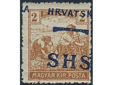 Yugoslavia. Michel 66 ★★, 1916 SHS overprint 2 f ochre with heavy misplaced overprint variety. KURZBEFUND Zrinscak BPP.