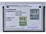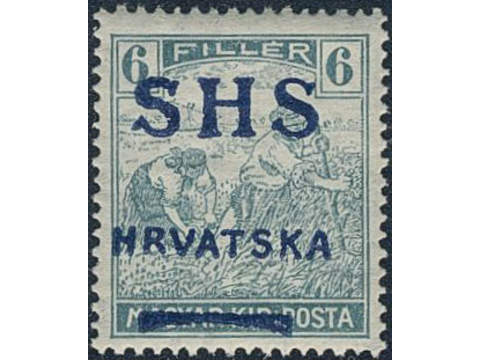 Yugoslavia. Michel 69 ★★, 1916 SHS overprint 6 f green-blue with heavy misplaced overprint variety. KURZBEFUND Zrinscak BPP.