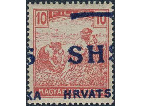 Yugoslavia. Michel 70 ★★, 1916 SHS overprint 10 f rose with heavy misplaced overprint variety. KURZBEFUND Zrinscak BPP.