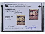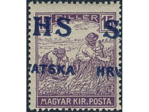 Yugoslavia. Michel 71 ★★, 1916 SHS overprint 15 f violet with heavy misplaced overprint to left variety. KURZBEFUND Zrinscak BPP.