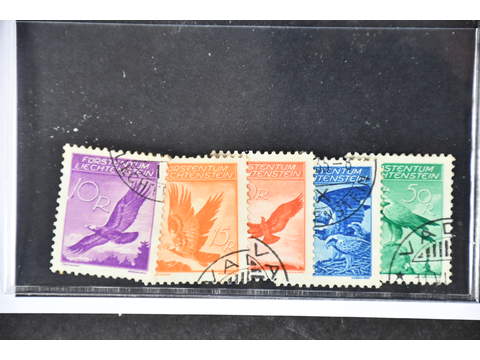 Liechtenstein. Michel 143–47y used, 1936 Birds SET ribbed gum (5). EUR 320