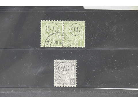 Monaco. Michel 11–12 used, 1891 Albert I 1 c in pair and 2 c. All with OL in circle cancel.