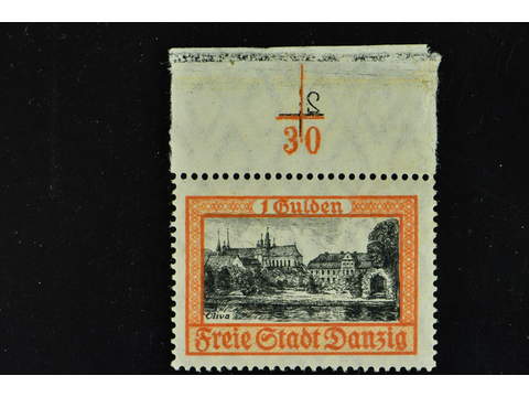 Germany Danzig. Michel 212b PI ★★ , 1932 Buildings II 1 G dark yellowish red/black with upper margin and plat number. EUR 180
