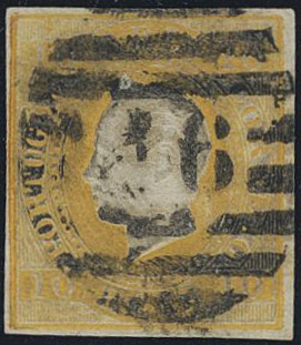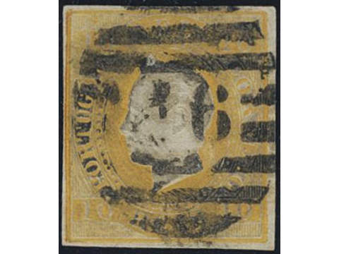 Portugal. Michel 18 used, 1866 King Luis I 10 R yellow-orange. EUR 200