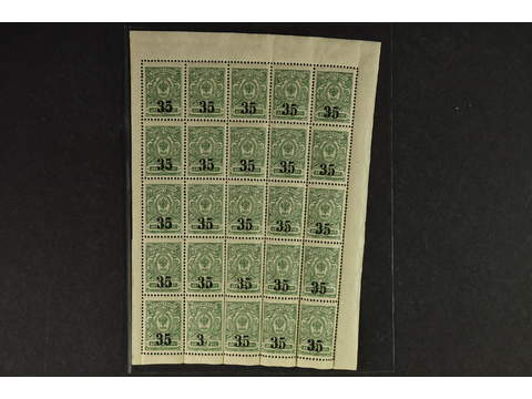 Russia Koltschak Army. Michel 1A ★★ , 1919 Overprint on Coat-of-Arms 35 on 2 k green perf 14¼ x 14¾. Complete sheet of 25 stamps including the missing "5" in "35" variety.