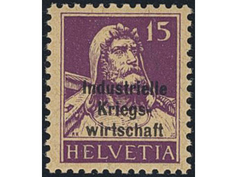 Switzerland, BIE/IBE. Official Michel 5 II ★★, 1918 Indusrrielle Kriegs Werkshaft thick overprint 15 c. 100 € if x.