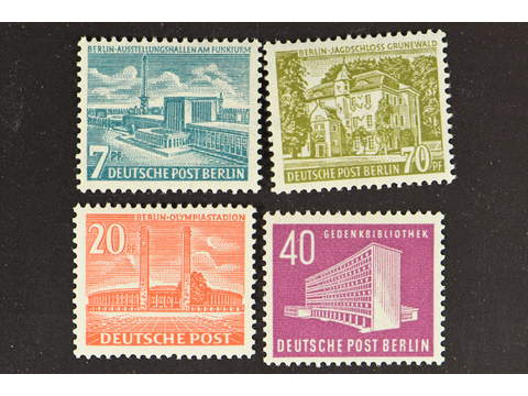 Germany Berlin. Michel 113, 121–23 ★★ , 1953 Buildings II 20 pf red and 1954 Buildings III SET 7–70 pf. (4). EUR 195