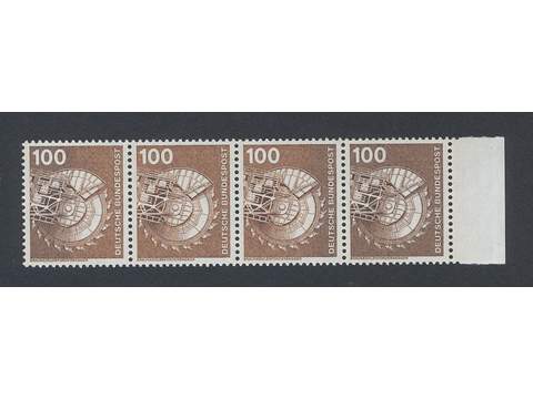 Germany GFR (BRD). Michel 854var ★★ , 1975 Industry and Technics 100 pf red-brown. Horizontal strip of 4 with porous ink application variety. EUR ,8