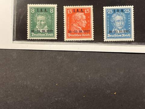 Germany, Reich. Michel 407–09 ★★, 1927 I.A.A. overprint SET (3). 15 pf ★, the others ★★. Red spot on 25 pf back side. EUR 240