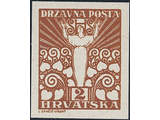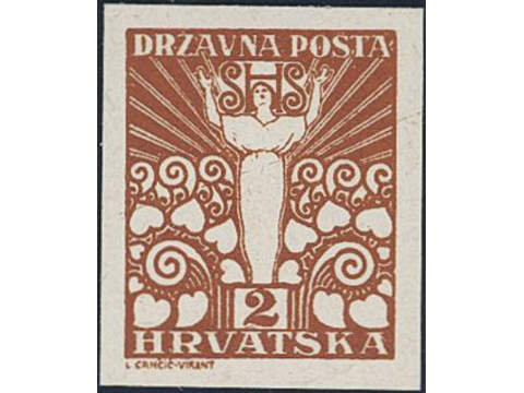 Yugoslavia. Michel 88 ★★, 1919 2 f yellow-brown imperf proof on carton paper. Cert by Zrinjscak 2012.