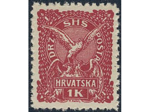 Yugoslavia. Michel 95A ★★, 1919 1 k carmine on thick paper. KURZBEFUND Zrinscak BPP.