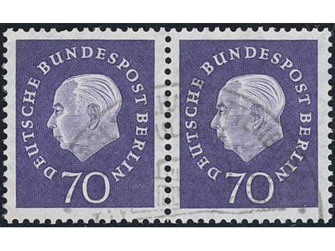 Germany, Berlin. Michel 186 used, 1959 Theodor Heuss 70 pf dark blue-violet. Vertical pair. EUR 300