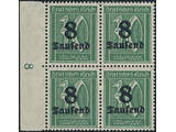Germany, Reich. Michel 278y ★★, 1923 Inflation overprints 8 Tausend on 30 pf dull green, wmk 2. Block of four, EUR 320.