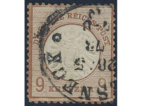 Germany, Reich. Michel 27a used, 1872 9 kr large shield red-brown. Old cert. Josef …