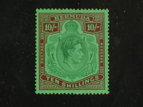 Bermuda. Michel 114a ★ , 1938 George VI 10 Sh green and deep lake on pale emerald paper. …