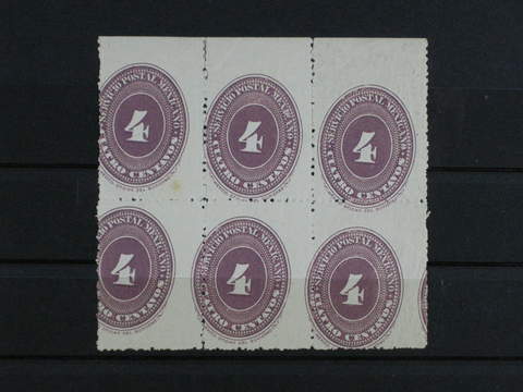 Mexico. Michel 150Ex ★★/★ , 1886 Numeral 4 c lilac perf 12 on white paper in block of 6. …