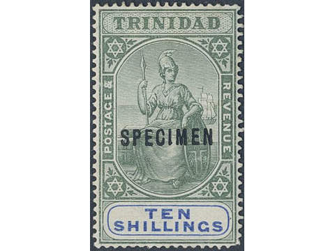 Trinidad and Tobago. Michel 45 ★, 10s green with SPECIMEN overprint.