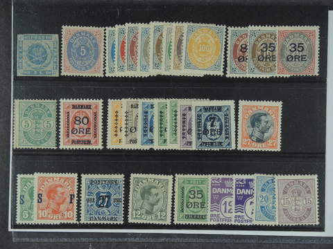 Denmark. ★ 1855–1918. All different, e.g. F 2, 30, 38-45, 47-49, 53, 123, 124-30, 144, 168-69, and 178. Mostly good quality. F 4990 (32)