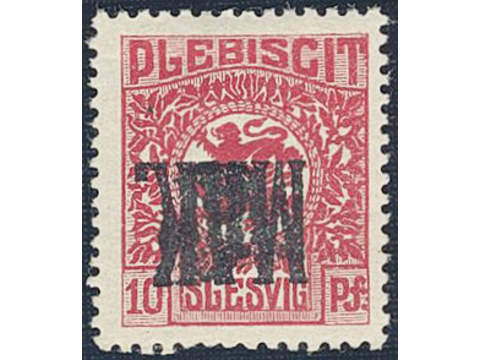 Denmark Schleswig. Facit 4 or Scott 4 ★ , 1920 Lion and Landscape 10 pf red perforated, with black MAK overprint. Mi 4P3. Somewhat short perf.