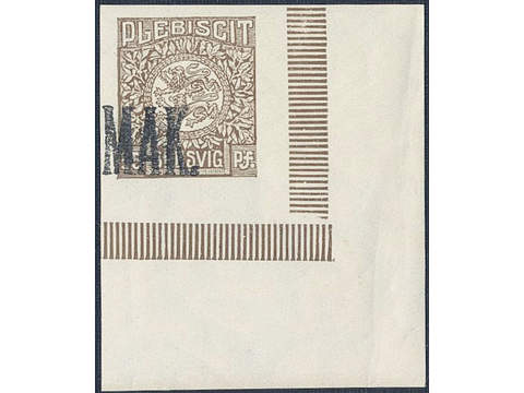 Denmark Schleswig. Facit 8 or Scott 8 ★★ , 1920 Lion and Landscape 35 pf brown imperf margin copy with black MAK overprint. Mi 8P2. Scarce never hinged.