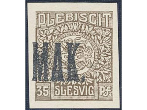 Denmark Schleswig. Facit 8 or Scott 8 (★) , 1920 Lion and Landscape 35 pf brown imperforate with black MAK overprint. Mi 8P2.