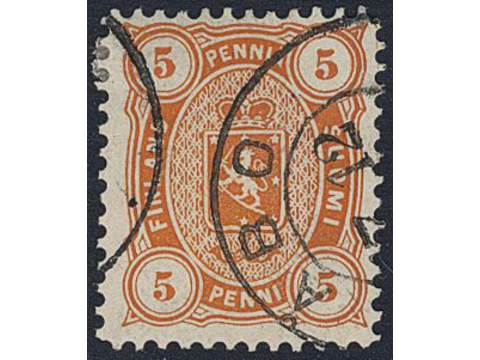 Finland. Facit 13SC2j used , 1881 Coat-of-Arms m/75, Senate printing 5 p orange perf 12½. SEK 1000