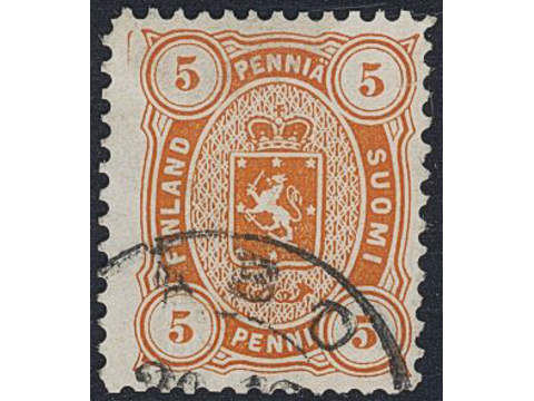 Finland. Facit 13SC2j used , 1881 Coat of Arms m/75, Senate printing 5 p orange perf …