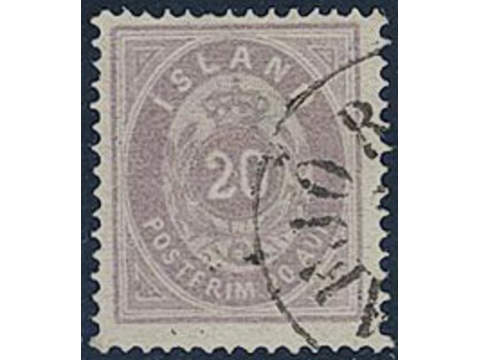 Iceland. Facit 14a used, 1876 Aur values 20 aur pale violet blurred print perf 14 × 13½. Cerificate CAM. SEK 4400