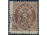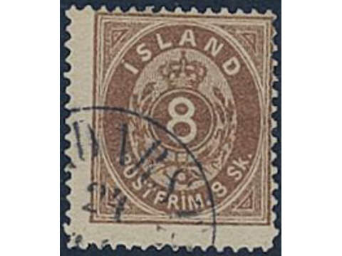 Iceland. Facit 3 used, 1873 Skilding values 8 sk brown, perf 14 × 13½. Cancellled …