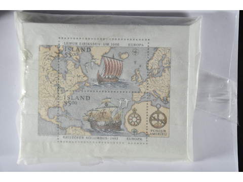 Iceland. Facit 799–800B ★★, 1992 Europa, discovery of America. 100 sheets in packet. SEK 12000
