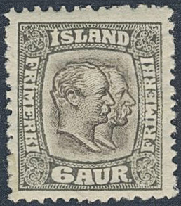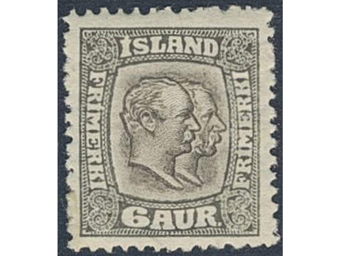 Iceland. Facit 80 ★, 1907 Two Kings 6 aur grey, watermark crown. SEK 3600