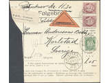 Norway. Facit 103, 120x2 cover , C.O.D. parcel card to Sweden, franked with posthorn 5 öre green and pair of posthorn 50 öre carmine-brown. Cancelled KRISTIANIA 10.VIII.15.